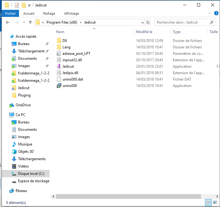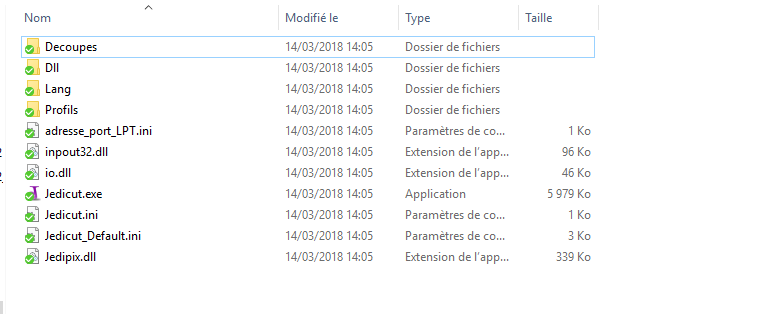 Rappel: le fichier comport.ini doit être dans la racine de Jedicut tu dois voir en même temps jedicut.exe et la USBSerial-2.dll doit être dans le répertoire Dll.