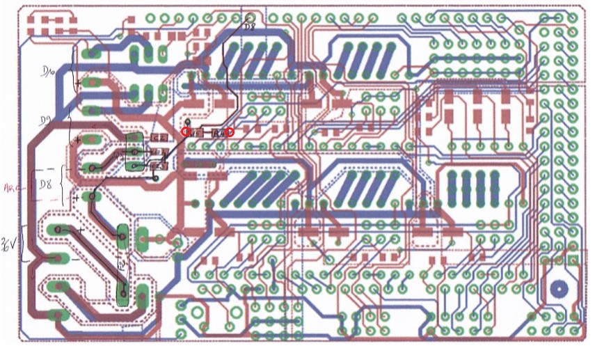 Mais bon en persévérant je suis parvenu a refaire les soudures sur R15 (à gauche) et R4 (à droite), le fer ne passe pas au milieu sans toucher le condo ou les picots des Drivers !